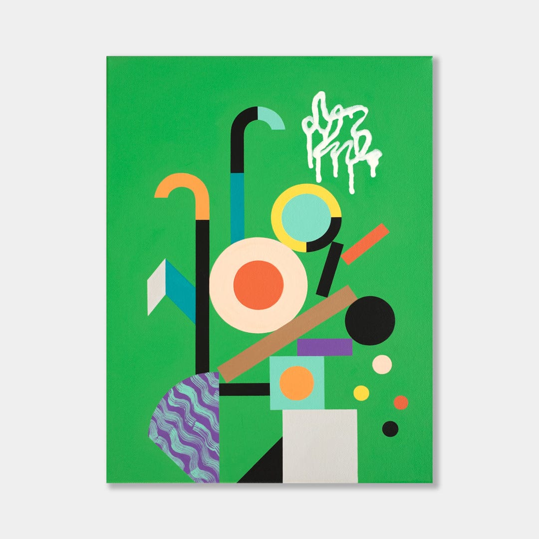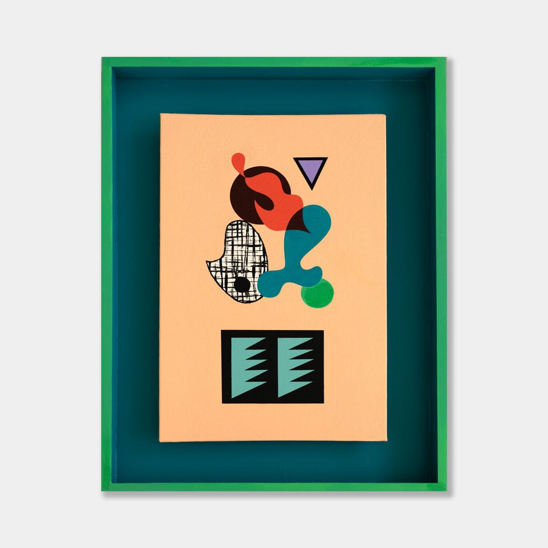 An original abstract painting combining mossy greens and warm cocoa browns. The gestural marks and highlights of pastel pink create a cosy yet whimsical blend.