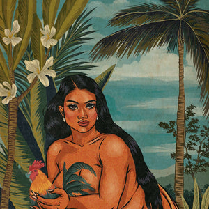 Inspired by an upbringing in Tonga, waking up every morning to a rooster's call and a backyard dotted with chickens. Lavenia's clock will always remain set to island time, counted by the clucks and distant beating of the tapa cloth.