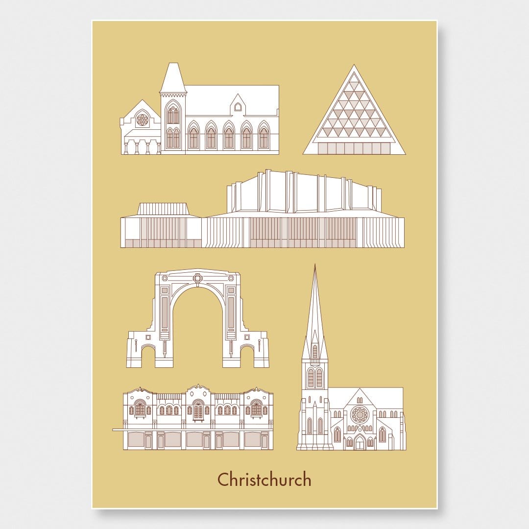 Hamish Thompson is a Wellington-based designer specialising in symbol, identity and information design. Christchurch born and bred, it was the devastating earthquakes in 2010/2011 that moved Hamish to design a series of 12 graphic artworks depicting iconic heritage buildings lost to the city.