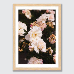 A crush of soft pink roses, each flower blooming in various stages of life.