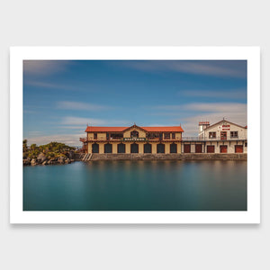 A long exposure photograph of The Boatshed in Taranaki Street Wharf, Wellington.