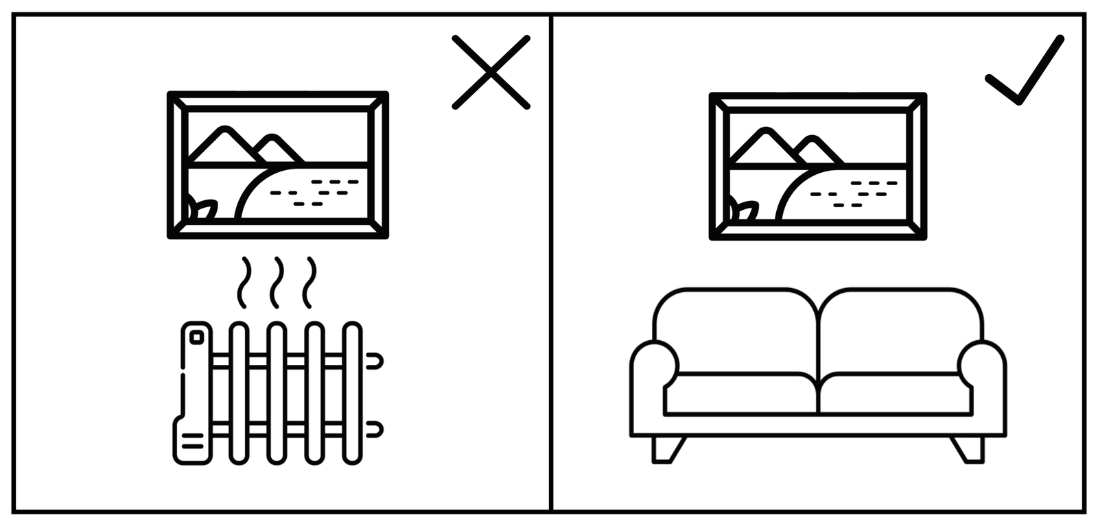 Hang your art away from sunlight & direct heat sources (like above a heater or fireplace)