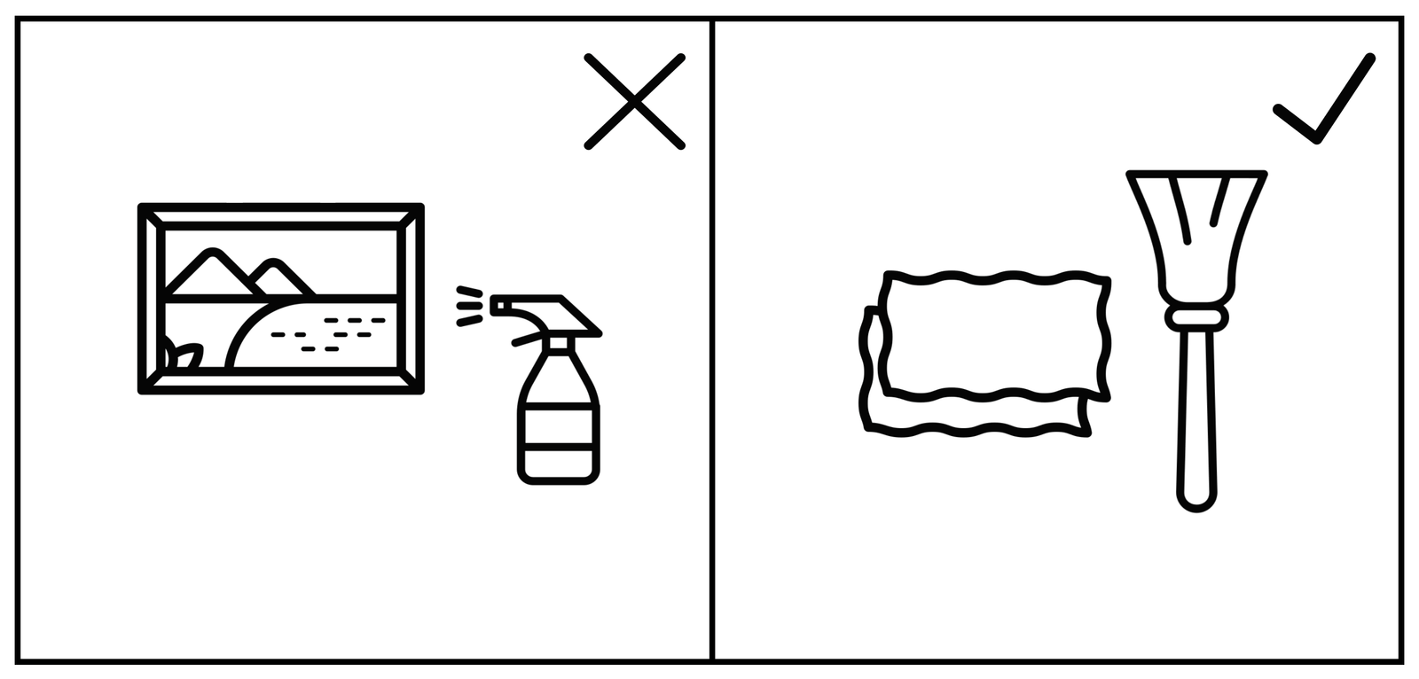 Don’t spray products directly onto your art or frame. Use a soft cloth for wiping & cleaning.