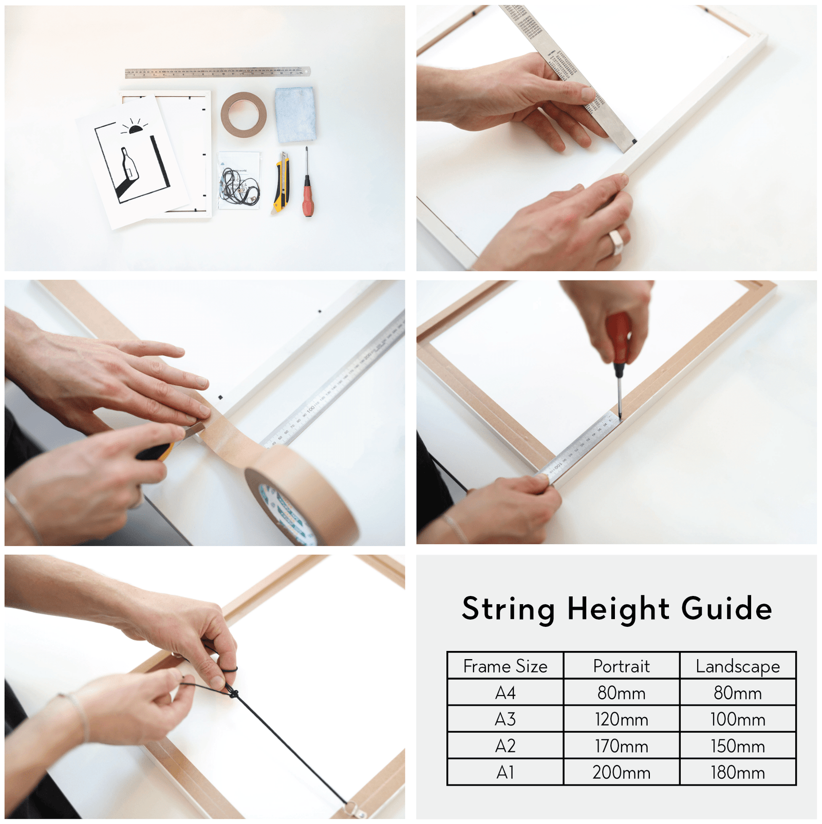 When hanging above furniture, the bottom of the artwork should be 200mm from the top of the piece of furniture.