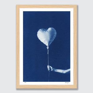 Handmade cyanotype print of Simple Pleasures. Joy can be as simple as something that floats. In this cyanotype series, balloons drift upward in all different shapes - quiet symbols of the wonder we felt so naturally as children. The deep blues hold a soft nostalgia, inviting us to remember how light happiness can feel, and how often the smallest things can be the ones that lift us the most.
